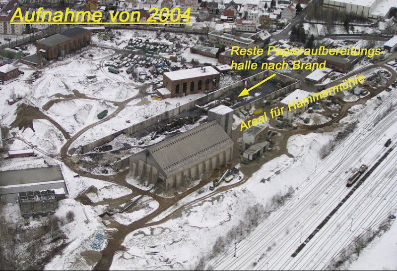 - Neubau Halle Hammermühle mit Ballenlager: überbaute Fläche 828 m² - Erweiterung Halle Hammermühle: Überbaute Fläche 1.430 m² - Wiederaufbau Papieraufbereitung nach Brand Überbaute Fläche 6.192 m²
