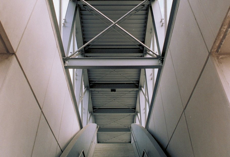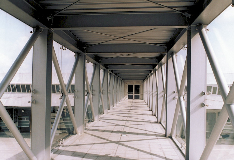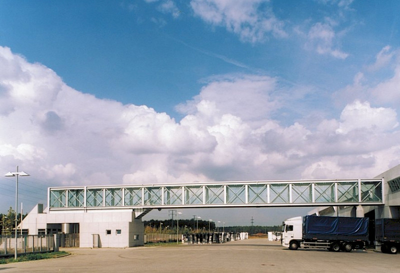 Fußgängerüberweg aus Stahl und Glas in Halbe