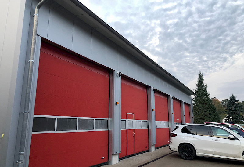 Neubau einer schlüsselfertigen DRK Fahrzeughalle für 10 Spezialfahrzeuge in Gerlach- Systembauweise