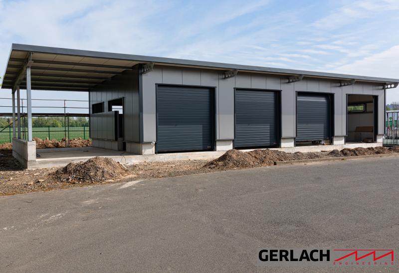 Stahlkonstruktion, Dach + Wand, Entwässerung, Tore/ Tür/ Fenster