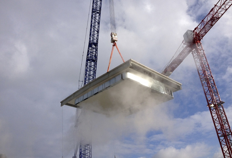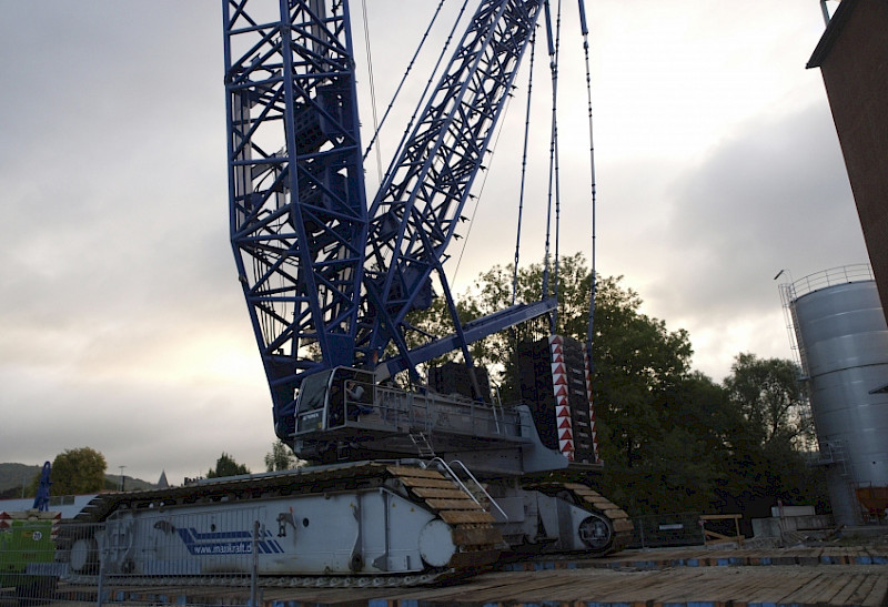 Unter Einsatz einer der größten Kräne Europas wurde ein 140 to schwerer Trockenzylinder in den Umbau installiert. Anschließend hat der Gerlach-Stahlbau mit dem 1.200 Tonnen Kran die vorgefertigte Dachkonstruktion auf die Halle gesetzt. Dach in der Abmessung: ca. 14m x 20m Stahlgewicht: 50to Ausbau: 20to Gesamtgewicht Dach: 70to